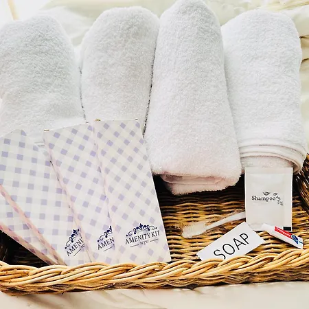 Bathroom comforts include toiletries and towels, and such essentials as a bidet, a shower, and a toilet.